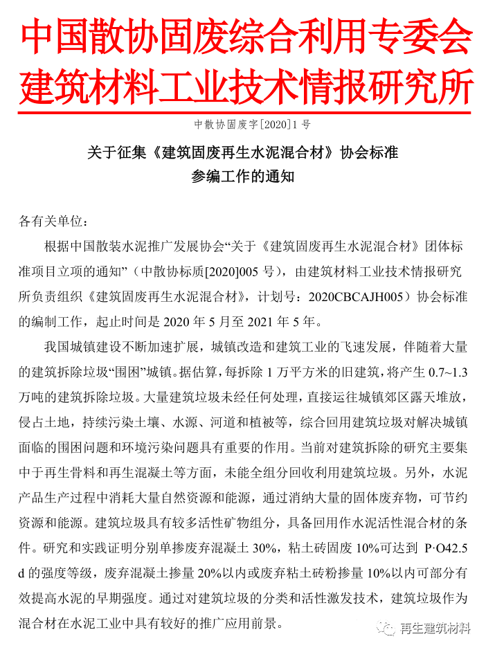 我國城鎮(zhèn)建設不斷加速擴展,城鎮(zhèn)改造和建筑工業(yè)的飛速發(fā)展,伴隨著大量的建筑拆除垃圾“圍困”城鎮(zhèn)。據估算,每拆除 1 萬平米 的舊建筑, 將產生 0.7~1.3 萬 t 的建筑拆除垃圾。大量建筑垃圾未經任何處理,直接運往城鎮(zhèn)郊區(qū)露天堆放,侵占土地,持續(xù)污染土壤、水源、河道和植被等,綜合回用建筑垃圾對解決城鎮(zhèn)面臨的圍困問題和環(huán)境污染問題具有重要的作用 。當前對建筑拆除的研究主要集中于再生骨料和再生混凝土等方面,未能全組分回收利用建筑垃圾。另外,水泥產品生產消耗大量自然資源和能源,可消納大量的固體廢棄物,節(jié)約資源和能源。為了提高建筑拆除垃圾的資源化效率和質量,筆者對建筑拆除垃圾用作水泥混合材進行了試驗研究。